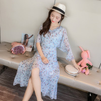 珂依舍2018春夏装新款沙滩裙海边度假女春夏2018新款波西米亚长裙长款碎花雪纺连衣裙