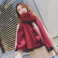 韩版围巾秋冬季女长款厚纯色流苏仿羊绒围巾披肩两用学生保暖围脖