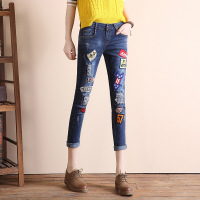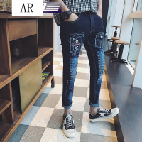 珂依舍2018春夏装新款新款徽章磨破显瘦秋季小脚裤女牛仔裤哈伦裤
