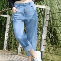娉语文艺宽松秋冬新款宽松哈伦牛仔裤女小清新休闲显瘦松紧腰牛仔裤秋