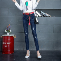 珂依舍2017秋装实拍秋季牛仔裤女破洞修身显瘦弹力小脚裤韩版高腰2017新款潮9038