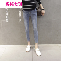 薇侣2017新品实拍高腰毛边牛仔裤女秋显瘦九分裤大码铅笔小脚裤潮