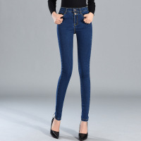 珂依舍2018春夏装新款排扣高腰牛仔裤女长裤夏秋新款弹力显瘦修身小脚铅笔裤