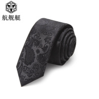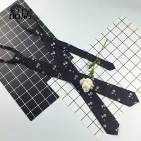 帅气刺绣黑色花领带男韩版窄版5cm细小型师懒人拉链式易拉得潮