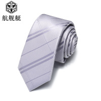 时尚领带男韩版窄版5cm男士银色白色条纹小领带潮礼盒装