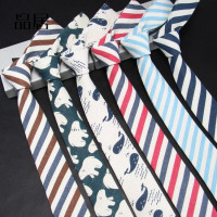 韩版窄版棉麻领带男6cm动物图案休闲风职业工作学院风 百搭条纹潮