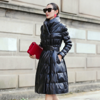 中国风新款海宁真皮皮衣女绵羊皮真皮羽绒服长款立领修身外套