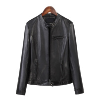 真皮皮衣女立领新款春秋绵羊皮机车皮夹克皮衣潮流女修身上身外套黑色