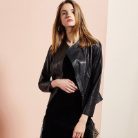皮衣女外套绵羊皮海宁真皮立领显瘦皮夹克女士短装不对称修身款