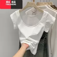 YIBUSHENG白色短袖t恤女2024季新款竹节棉打底衫修身半袖T显瘦