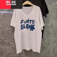 YIBUSHENG港味复古chic短袖女季V领大码竹节棉T恤宽松慵懒风潮牌ins上衣