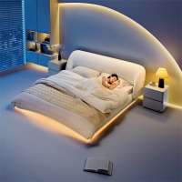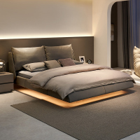 全友家居设计师款时尚简约舒适大靠包布艺床巴斯悬浮灯带布床