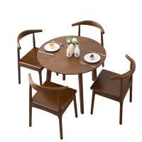 初嘉(CJ)实木小圆桌简约圆形餐桌接待洽谈桌茶桌椅组合 胡桃色1米一桌四椅
