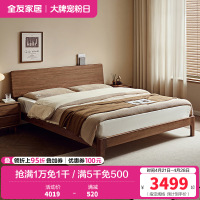 全友家居2024新款北欧风双人实木床主卧1米8北美黑胡桃木床