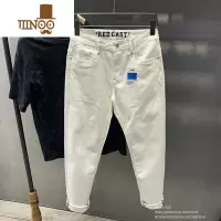 YANXU潮流修身小直筒米白色牛仔裤男简约刺绣百搭弹性2023长裤时尚