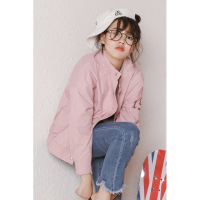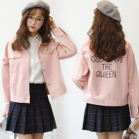 新款春秋韩版女长袖休闲百搭原宿风学生宽松工装风衣外套粉色潮