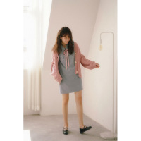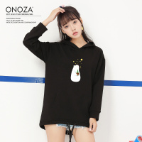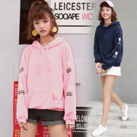 秋冬季新款长袖连帽卫衣女中长款粉色套头宽松小清新外套