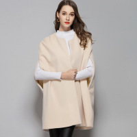 2018早春新款明星 粉色甜美中长款斗篷大衣 宽松双面绒外套女