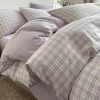 简约格子床上四件套纯棉全棉床品2026新款水洗棉床单被套罩三件套