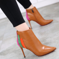 韩版潮款性感细跟尖头女靴子2017秋冬新款裸靴及踝靴短靴高跟女鞋