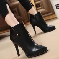 欧美2017秋冬新款细跟尖头短靴女高跟鞋防水台性感夜店女靴马丁靴