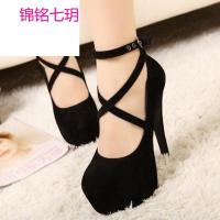 锦铭七玥秋新款超高跟鞋细跟夜店伪娘女鞋绒面交叉扣带大码鞋4142