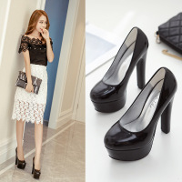 2017新款春秋新款女鞋漆皮圆头浅口防水台超高跟鞋细跟性感夜店粗跟高跟鞋