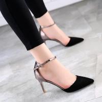 2017春秋新款尖头凉鞋粗跟单鞋绒面性感高跟鞋浅口凉鞋时尚女鞋子