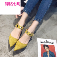 锦铭七玥2018春季新款单鞋女低帮鞋绒面尖头细跟女单鞋魔术贴浅口女鞋