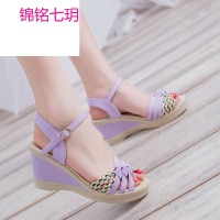 锦铭七玥2018春夏新款韩版女凉鞋高跟拼色坡跟女凉鞋露趾时尚凉鞋
