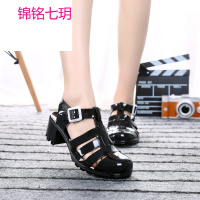 锦铭七玥夏欧美新款高跟厚底坡跟女凉鞋粗跟罗马鞋镂空洞塑胶女鞋休闲