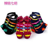 锦铭七玥时尚糖果彩色女鞋拼接 绒面荧光漆皮细带鞋超高跟坡跟女凉鞋