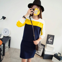 莞馨(wanxin)女装秋装2016新款潮韩版秋季时尚气质修身长袖撞色圆领针织连衣裙