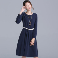 莞馨(wanxin)女装秋装2016新款长袖棉麻连衣裙 韩版收腰显瘦圆领大摆裙