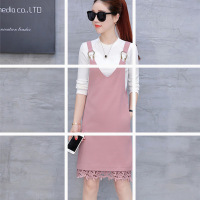 吊带连衣裙女2017夏季新款韩国职业雪纺长袖衬衫背带裙两件套女潮