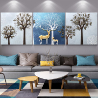 欧式客厅装饰画沙发背景墙画3d壁画餐厅大气浮雕挂画三连画鹿油画