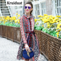Kruidvat2017欧美女装春季印花仿连衣裙配腰带LT红色胸针配腰带裙