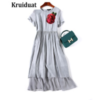 Kruidvat2017夏季新款圆领胸花亮片收腰双层裙摆连衣裙CJ灰色