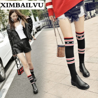 品牌2017秋冬新款张天爱杨幂机场潮拍街拍同款欧美过膝靴女袜子靴弹力靴女显瘦粗跟长靴黑色