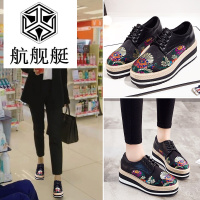 松糕鞋女秋季新款百搭欧洲站英伦风增高坡跟单鞋刺绣厚底休闲女鞋