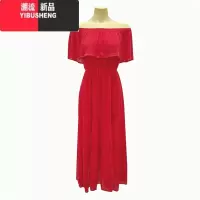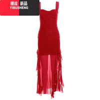 YIBUSHENG气质红色荷叶边吊带连衣裙女装季度假修身长裙开叉收腰a字裙子