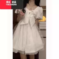 YIBUSHENG法式白色蝴蝶结连衣裙女季高级感气质仙女蓬蓬裙收腰小个子短裙