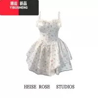 YIBUSHENG法式白色碎花吊带连衣裙女季新款辣妹纯欲风收腰显瘦公主蓬蓬裙