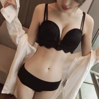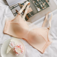 半杯无钢圈文胸小胸加厚深V性感聚拢调整无痕内衣少女夏季蕾丝边