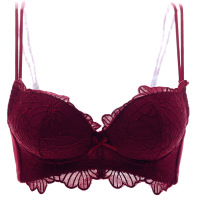 【送内裤】性感舒适蕾丝边聚拢文胸罩加厚款秋调整内衣酒红色少女
