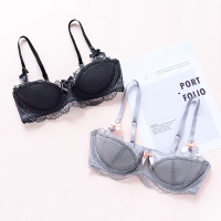 法式浪漫蕾丝边文胸女套装性感半杯薄款透视内衣小胸胸罩聚拢少女