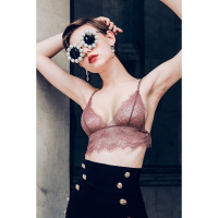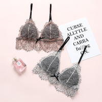 性感法式内衣蕾丝边文胸套装女薄款无钢圈日系少女胸罩透明三角杯