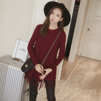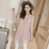 圆领套头中长款流苏毛衣连衣裙纯色打底裙好质量超弹力粉均码