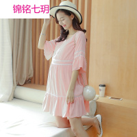 锦铭七玥好质量2017春夏新款舒适孕妇装甜美五分袖孕妇连衣裙孕妇裙雪纺裙