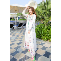 旗下【那片海】波西米亚十字绣重工刺绣长袖海边度假连衣裙沙滩裙长裙白色
